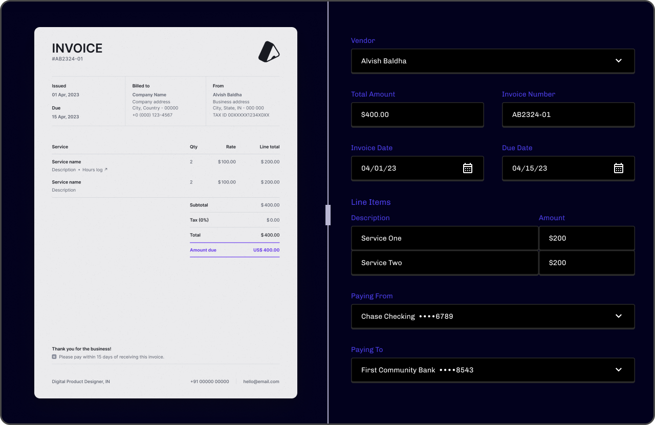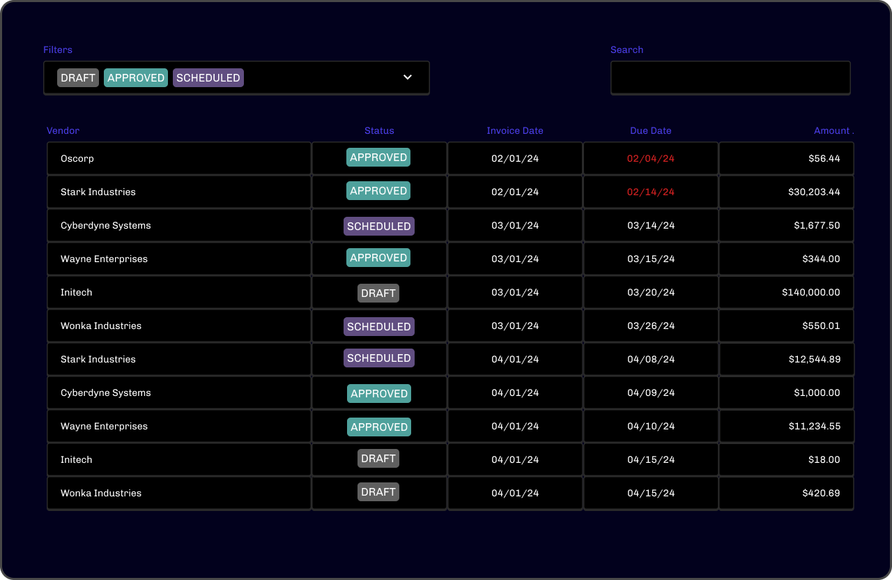 Everything you need to launch AI-powered BillPay and Invoicing to your customers. Payments, workflows and frontend components vertically integrated or a-la-carte.